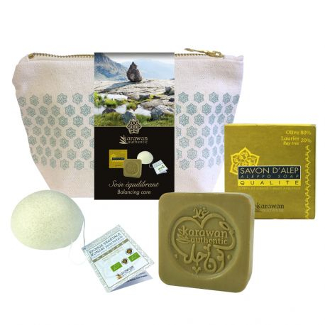 • Une trousse de toilette en coton certifié Oeko-tex, 19 x 12 x 5 cm