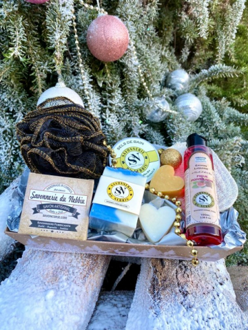 Ce coffret "Grand" est composé de :1 savon Natural 100g1 savon Tradition 130g1 liquide 100ml1 sel de bain 100ml2 minis savons1 porte savon loofa1 fleur de douche1 coffret