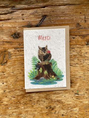 Carte "Merci hibou" ensemencée fournie avec son enveloppe