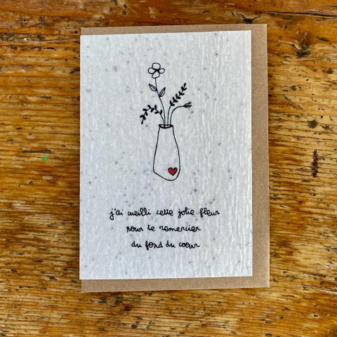 Carte "Te remercier du fond du cœur" ensemencée fournie avec son enveloppe
