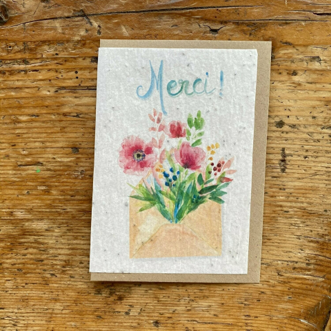 Carte "Merci" ensemencée fournie avec son enveloppe