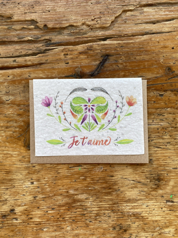 Carte " Je t'aime " ensemencée fournie avec son enveloppe
