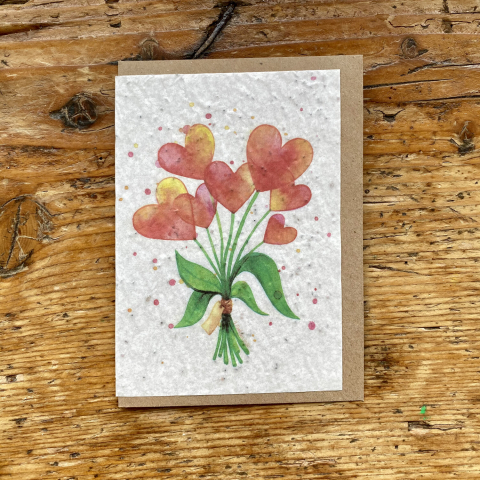 Carte "Bouquet de coeurs " ensemencée fournie avec son enveloppe