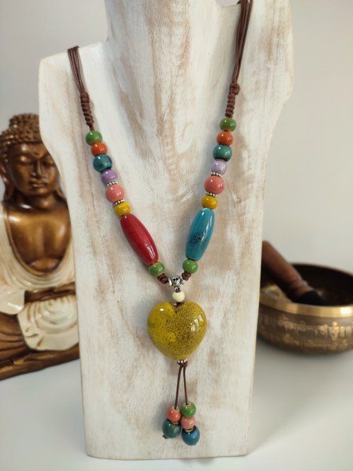 Bijoux de corallie collier coeur jaune