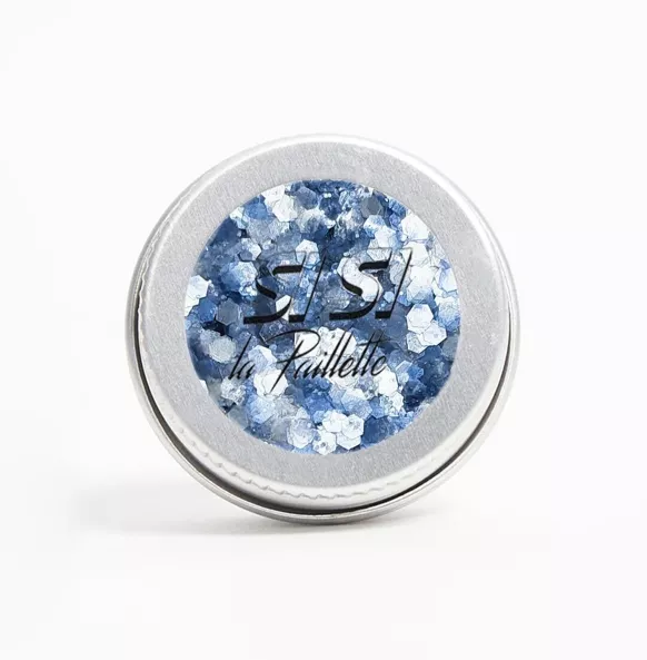 Un mélange de paillettes à base de plantes nacrées Tout Schuss ! aux couleurs polaires, d’un bleu légèrement lilas et d’un blanc nacré translucide, de toutes les tailles, et surtout 100% sans plastique.