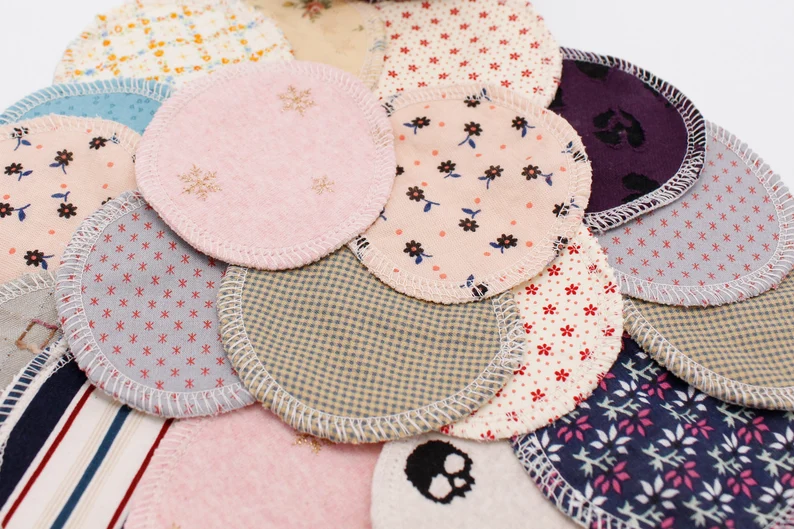 Nous vous proposons des lots de 50 mini disques à démaquiller de 8 cm de diamètre fabriqués à partir des chutes de nos collections.
