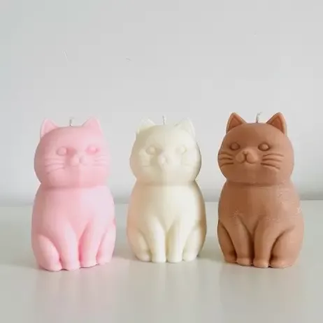 Jolie bougie en forme de chaton. Les bougies sont coulées avec de la cire de colza. La cire de colza brûle plus longtemps et mieux que les bougies à la paraffine.