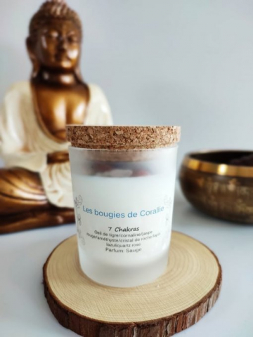 Bougie avec pierres naturelles lithothérapie : Œil de tigre ,cornaline ,jaspe rouge, améthyste, cristal de roche, lapis Lazuli, quartz rose