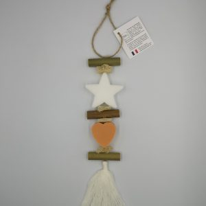 Tresse savons 1 étoile blanche et 1 coeur fleur d'oranger avec du bois flotté.