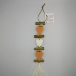 Tresse 3 savons coeurs amande et fleur d'oranger avec du bois flotté.
