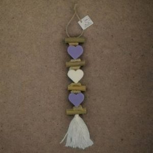 tresse savons 2 coeurs lavande et 1 coeur amande avec du bois flotté.