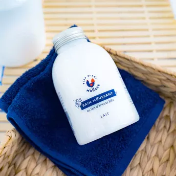 Si l’idée d’un moment de relaxation dans un bain nous met en joie, nous ne pouvons cacher notre émotion quand on apprend qu’en plus, il est au lait d’ânesse. Le bain moussant au lait d’ânesse bio Bleu Blanc Mousse est constitué de lait d’ânesse bio et d’un peu de parfum.