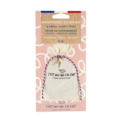 Shampooing solide bio "Péché de gourmandise" au rhassoul. Effet volume et texture. Fragrance cerise et amande amère.